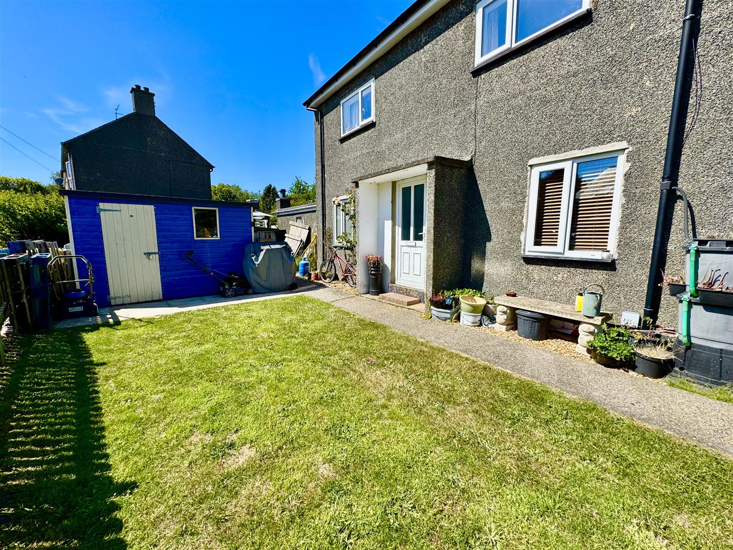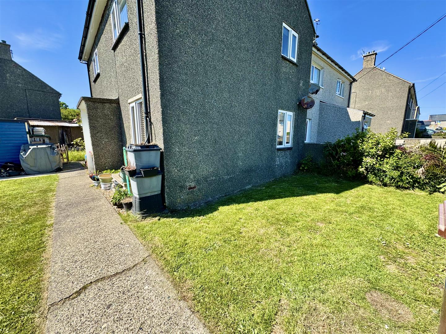 Gardens to front, side and rear. Garden shed. On street parking.