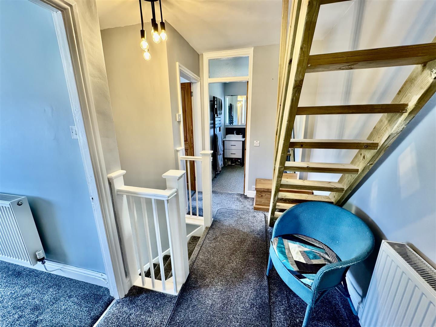 Radiator. Fixed ladder style stairs to loft room.