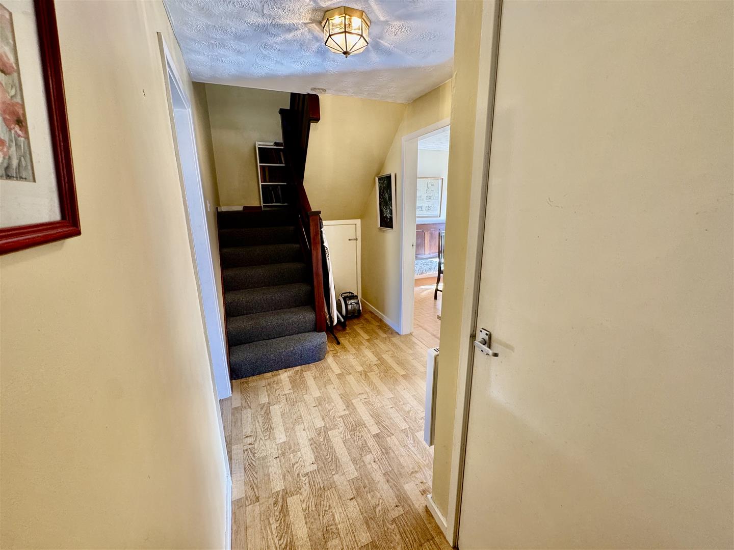 Electric wall mounted heater. Under stairs cupboard.