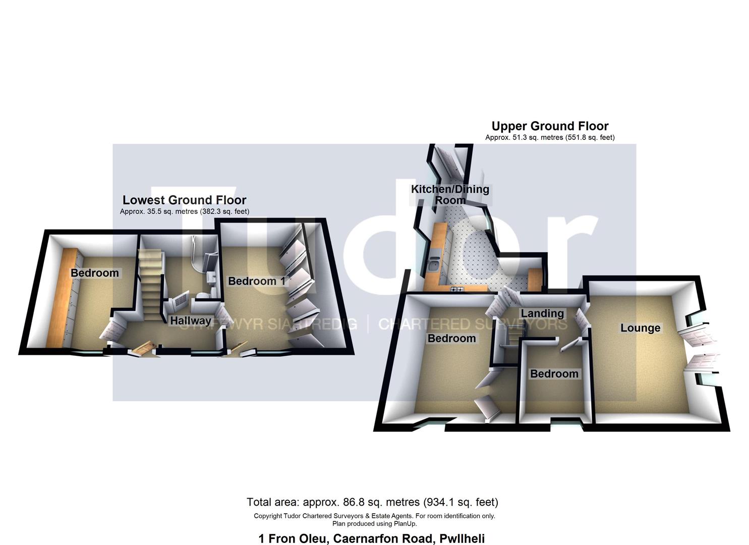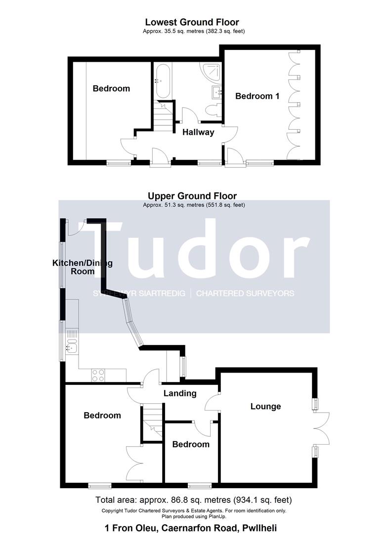 Upper Ground Floor: Two Bedrooms. Lounge. Kitchen-Diner.