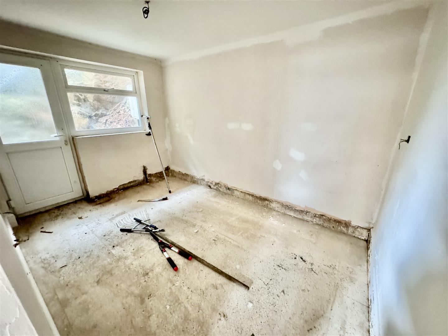 Space for kitchen units. Outside door to small rear yard with foot access to the street.
